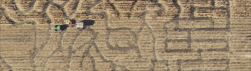 Harvesting the corn maze at the American West Heritage Center, Wellsville